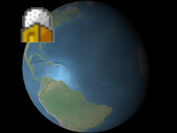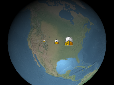 Below, the billboard is positioned at the center of the Earth but an eye offset makes it always appear on top of the Earth regardless of the viewer's or Earth's orientation.