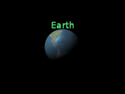Below, the label is positioned at the center of the Earth but an eye offset makes it always appear on top of the Earth regardless of the viewer's or Earth's orientation.